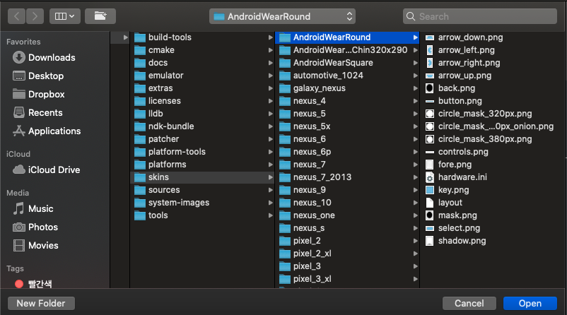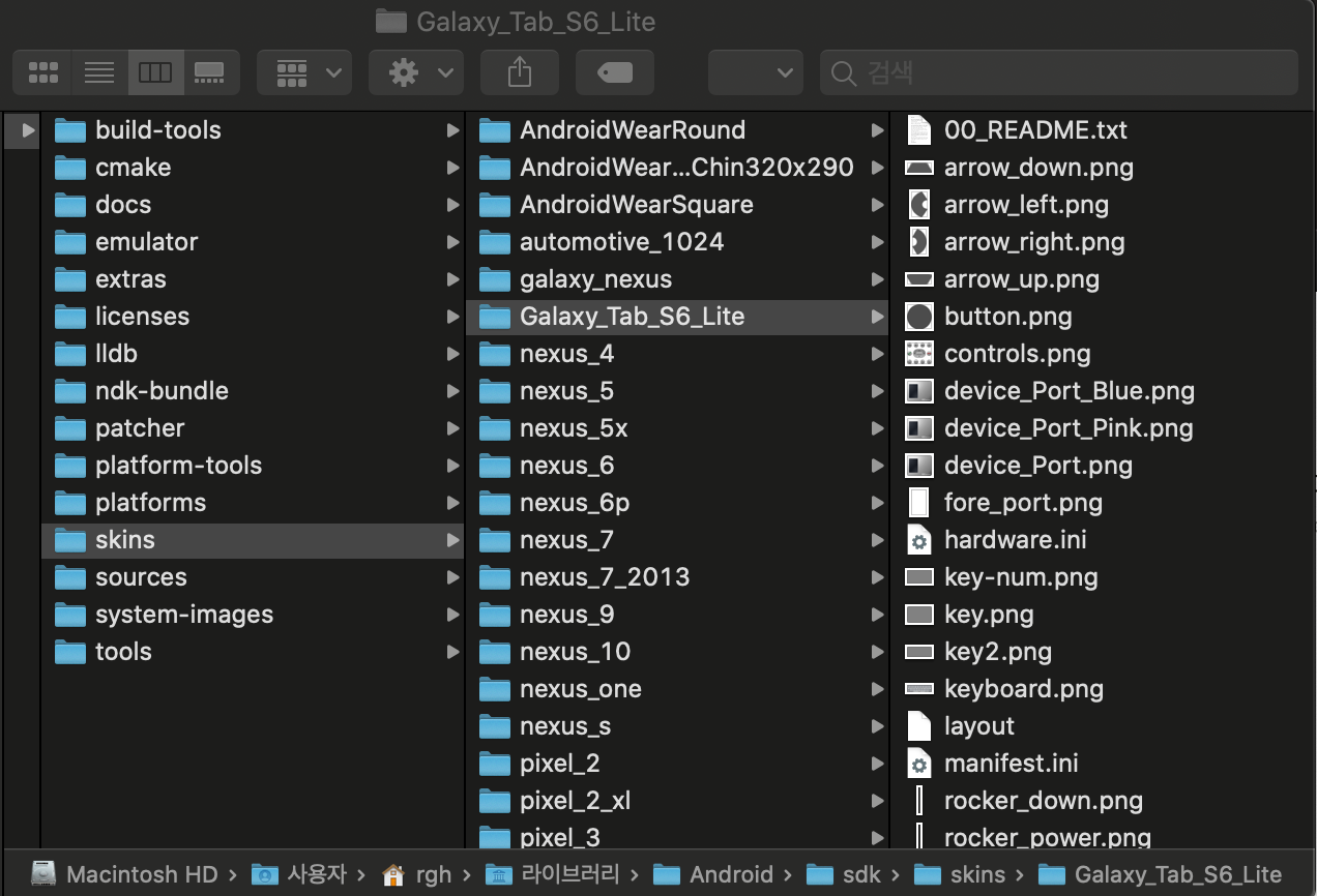 # Window C:\Users\YourName\AppData\Local\Android\Sdk\skins # Linux /home/YourName/Android/Sdk/ # Mac ~/Library/Android/Sdk/skins2-1. 당황하지말고 침착하게 빨 -> 주 -> 노 -> 초 순으로 폴더를 찾아내자