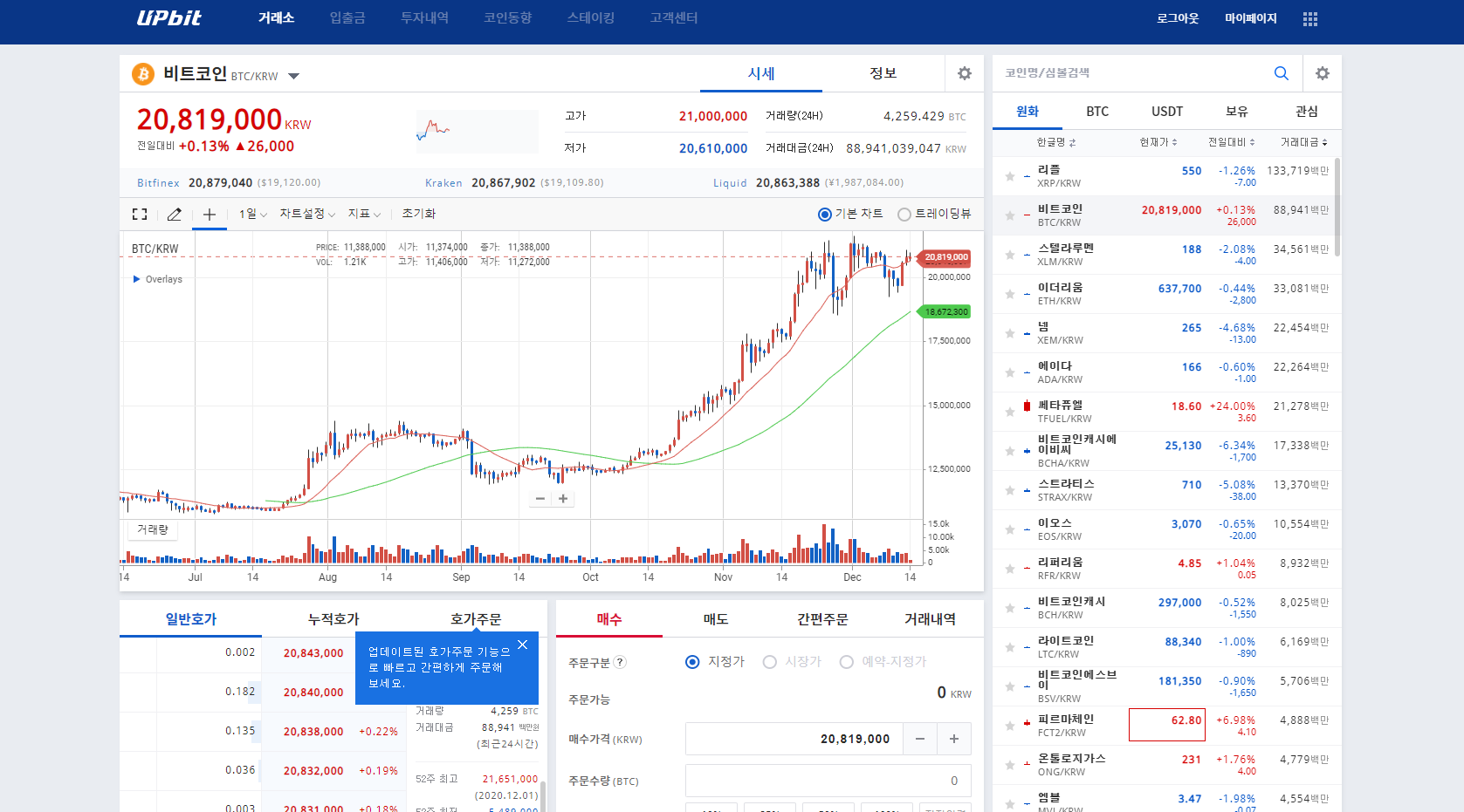 암호화화폐 거래소 업비트를 예로 들어보자. 내가 알고 있는 프론트엔드 지식으로 프론트의 역할을 생각 해보면 아래와 같다.