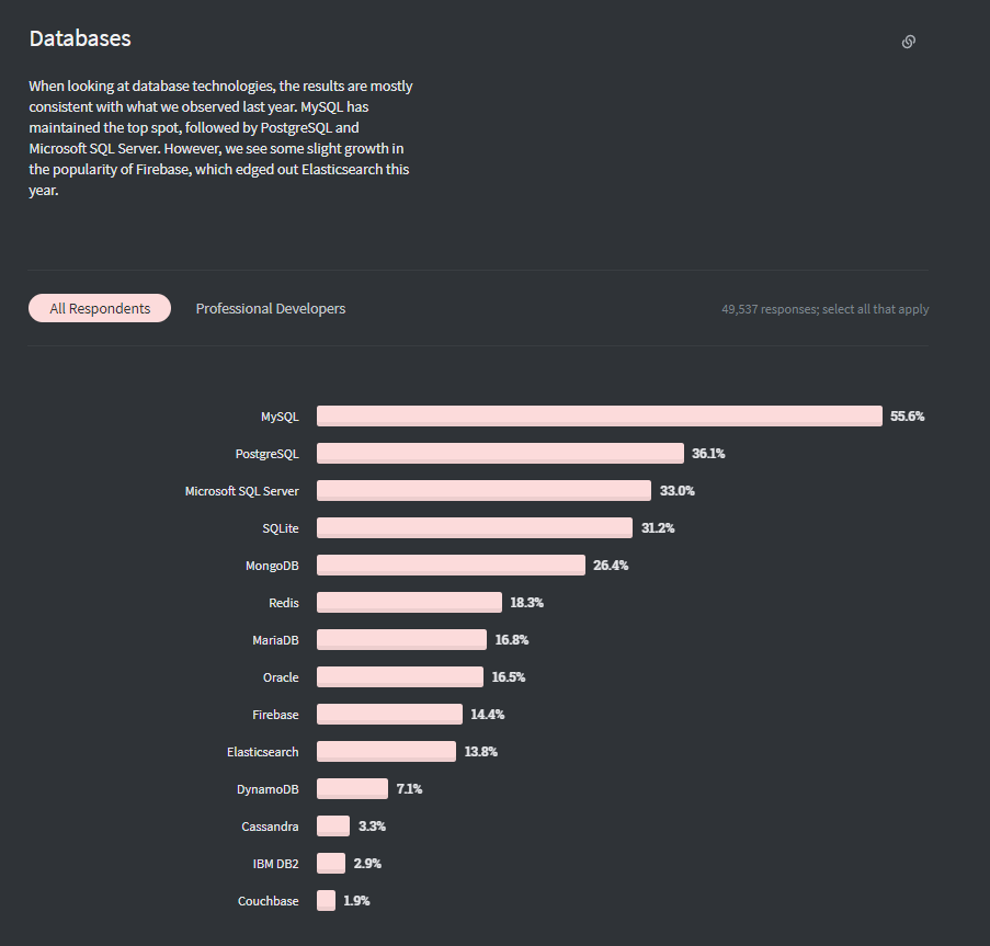 stackoverflow의 2020 survey & stackoverflow의 2020 survey 위 DB 트랜드에서 MySQL, MongoDB를 많이 들어보았던 것 같다. 각 DB에는 어떤 차이가 있을 까?